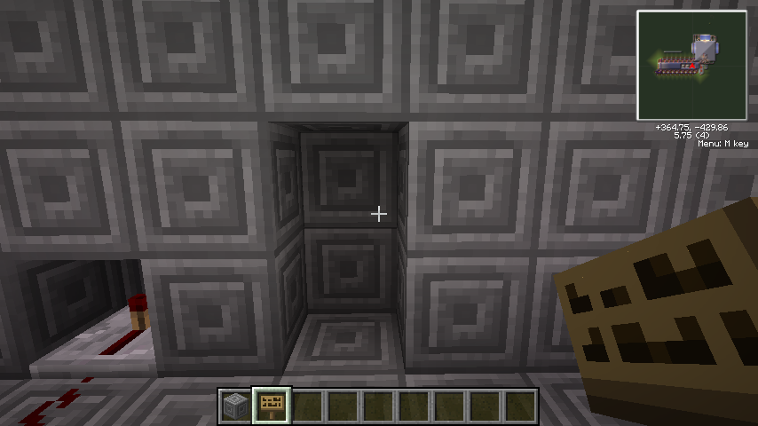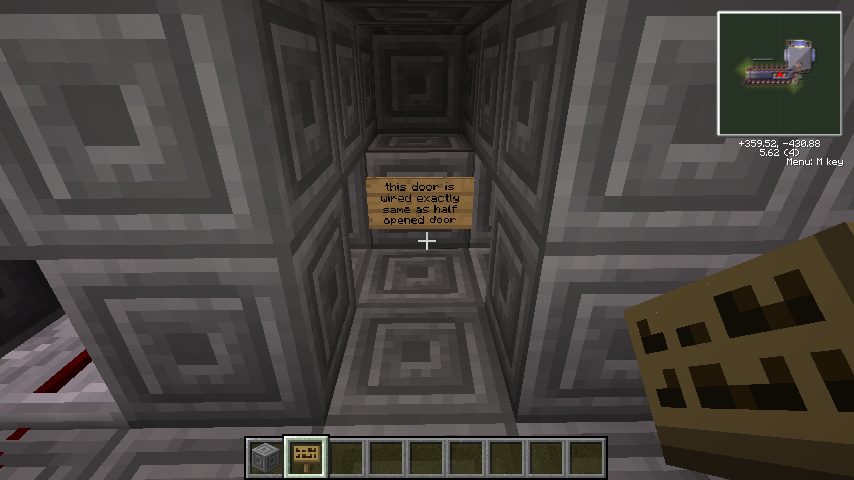 Screenshot 1: closed doorway, both top and bottom piston powered, and a sign is behind the top block in the doorway/