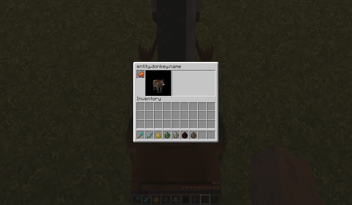 When riding on a tamed horse, mule or donkey, they still use their entity codes.