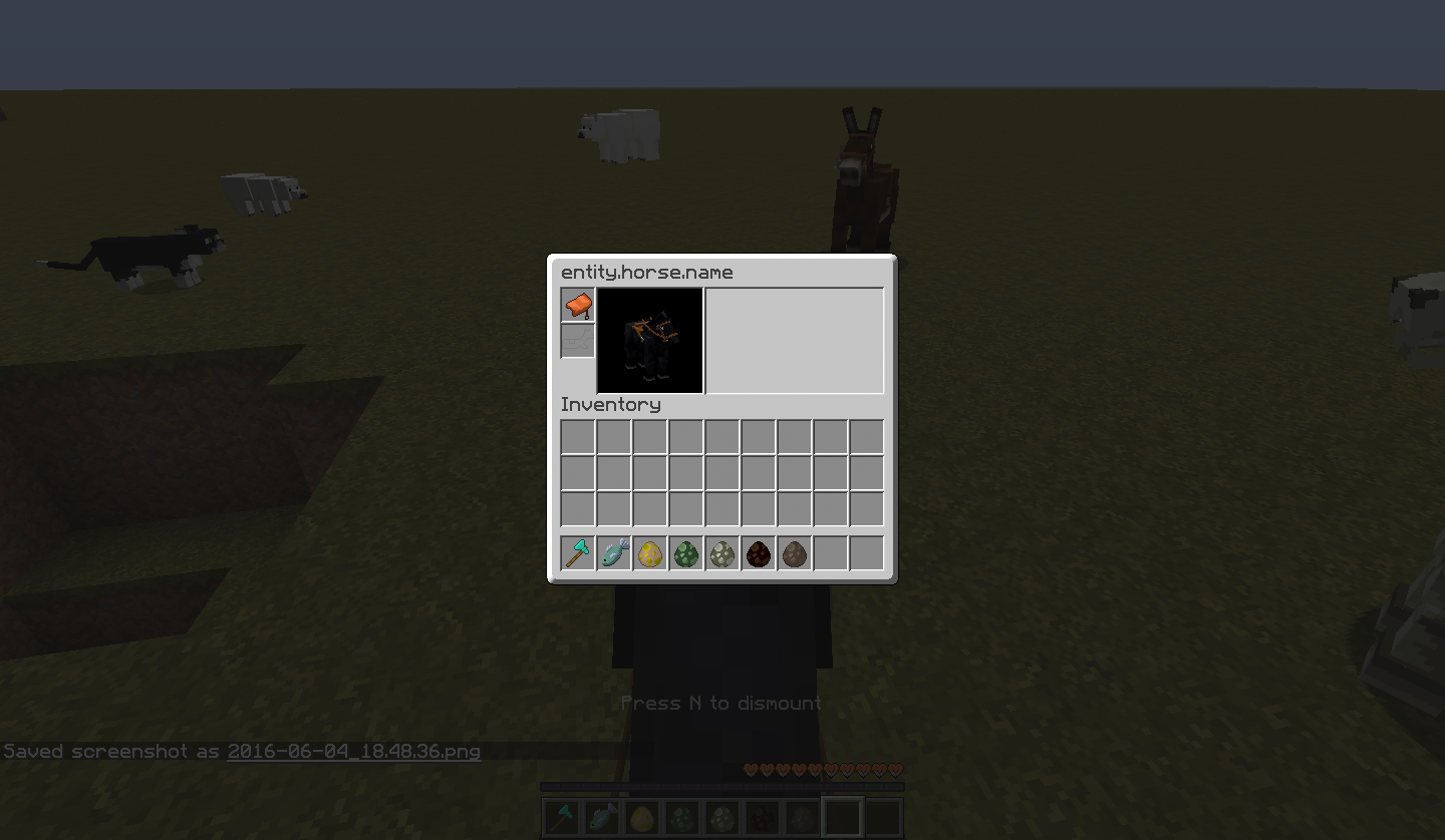 This bug report is about various different things so I'm not marking it as fixed, but the horses should now have proper names in their inventories etc