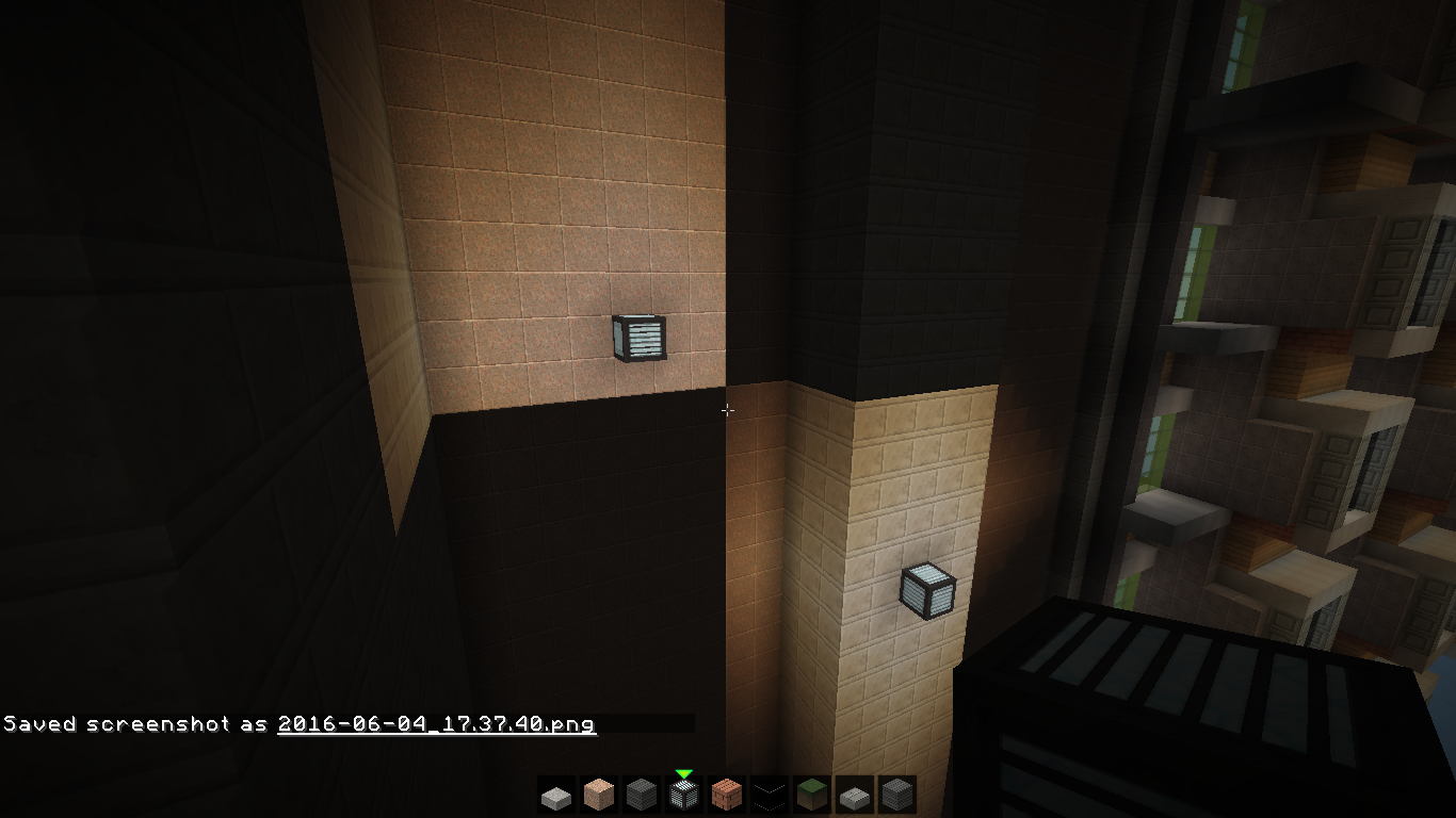 Hello. I experience errors related to shadows and that the textures of blocks turn black. I'm using a texture pack called "Flow's HD", but as far as I can remember, these problems also occur with the default resource pack. The errors are always the same, and new ones are made during the process of building. As I load the world, these can be seen. It is easily to "fix" them. I just put a block close to or upon the errors, and by removing it, the errors are half-way fixed. Anyway, I can do this as many times as I want, but they occur again every time the chunk they're in are reloaded. I barily use any other worlds, so I can't say whether this has happened in them. These problems started happening in 1.8.4, the first 1.8 version I played, as 1.8.0 crashed my worlds and made large damages to them. There were mainly water and glass errors. These were a bit fixed in 1.9. Elsewhere, the shadow and black textures (Also light errors) have become worse as more I've updated the game. The world I'm playing in was made in 1.7.10.