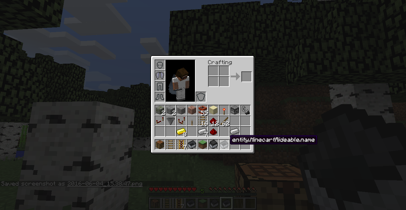 When the cart is on track and I will destroy , when it comes to the hand goes under the name " entity.MinecartRideable.name "