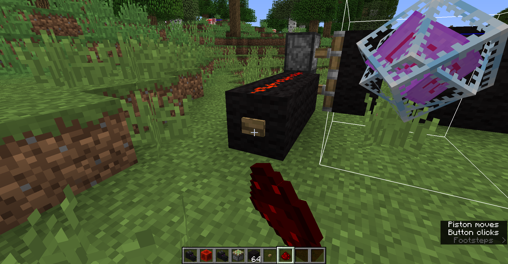 While extending, Block 36 will render in front of the white/blue/red lines that make up the box that visualizes an Entity's hitbox while in F3 + B mode.