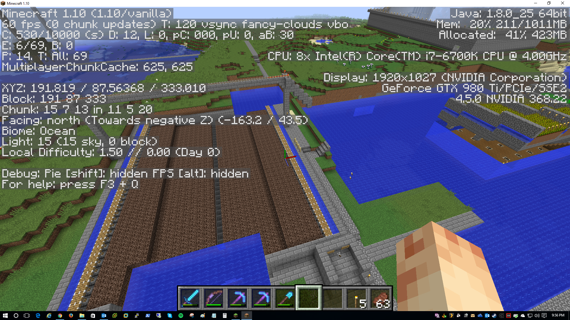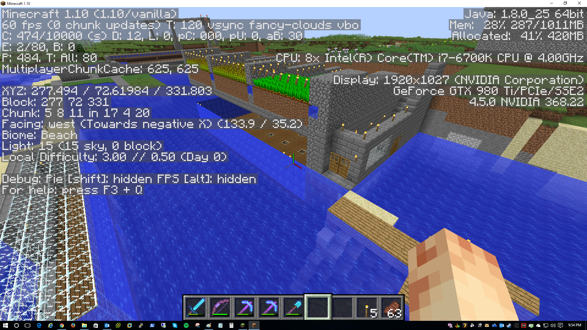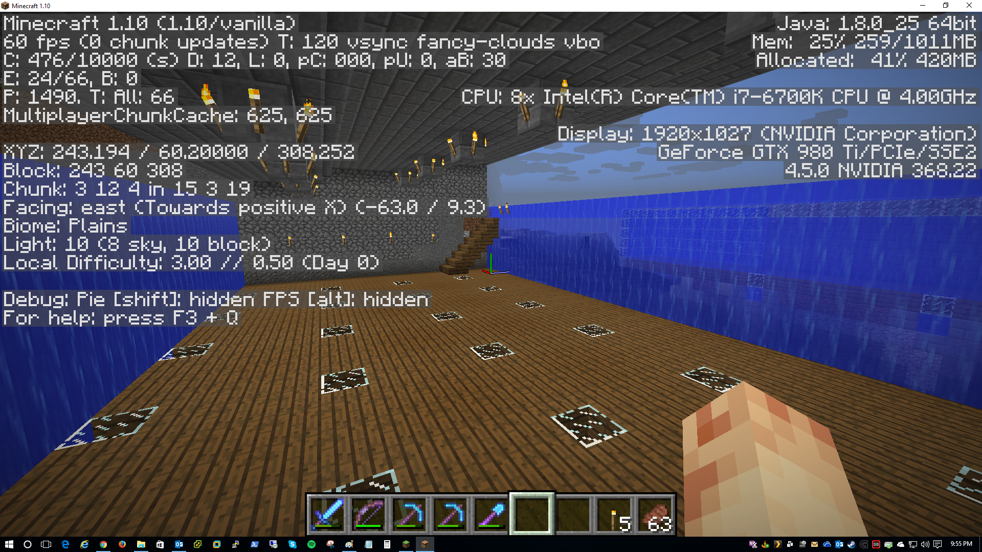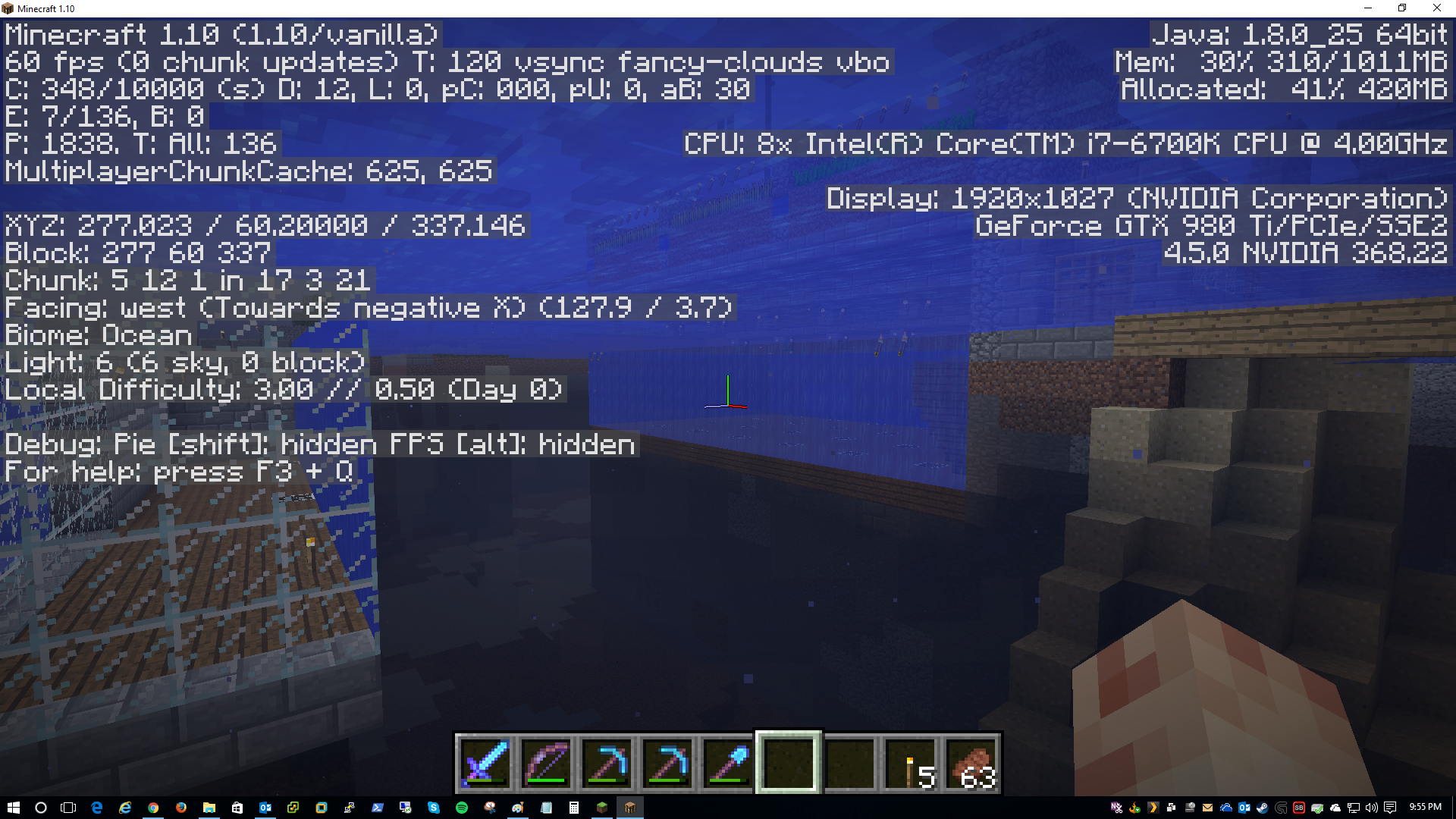My world was completely destroyed after doing the update from 1.9 to 1.10. A lot of chunks where I had items built have been replaced with water. Please see screenshots. I never ran any of the snapshots or anything.
