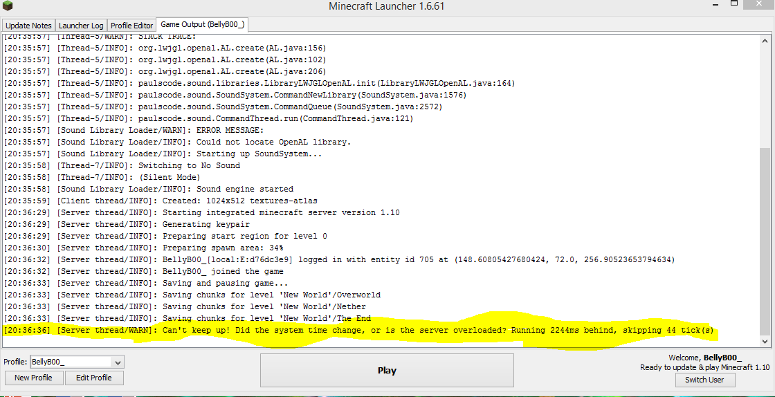 What happened was: when I created a new world (survival, cheats on) the world would generate, and then the game would crash. I have included a screenshot of the game output log and highlighted how the problem was reported. Every time the game crashes the report is similar to this. I also get a notice that Java SE Binary crashed, though I have uninstalled and reinstalled both Java and Minecraft many times to try and resolve the issue.