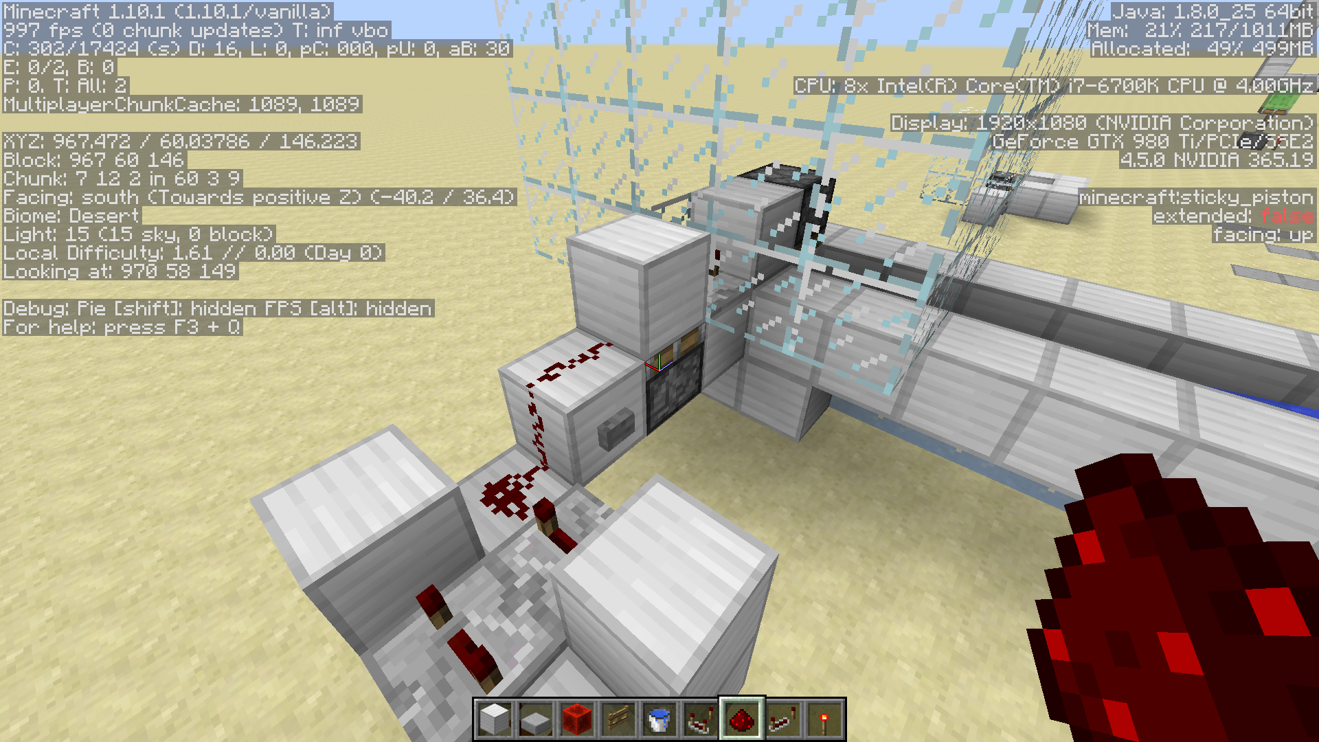 I've uploaded the error log from the initial crash, as well as a screenshot of the sticky piston in question.