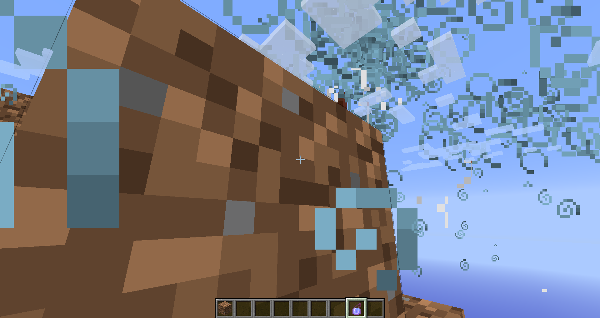 I broke a block and noticed the particles looked a little odd so I repeated it again and saw the particles behind the clouds.