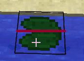 2. Point at a block near the edge of the water area with a lilypad in hand