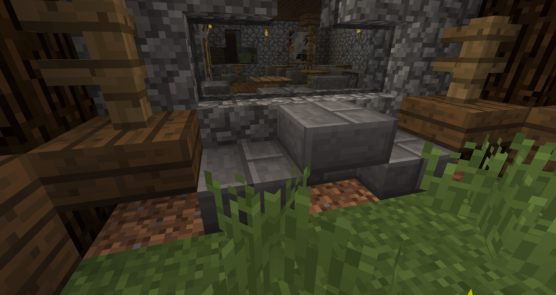 Grass blocks turn into dirt blocks after a while under upside-down stairs and top slabs.