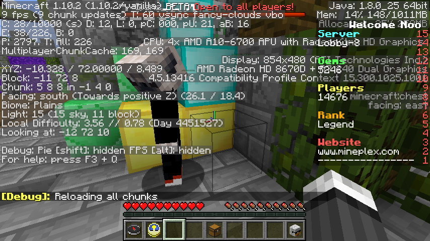 So i was on multiplayer on 1.10.2 and i had a line of chests so i needed to grab something from one of them but they were invisible i even hit the F3 key and it it said minecraft:chest, I do not know if its my client or a public bug but i'm not sure if this this is a realms bug or minecraft bug 😞