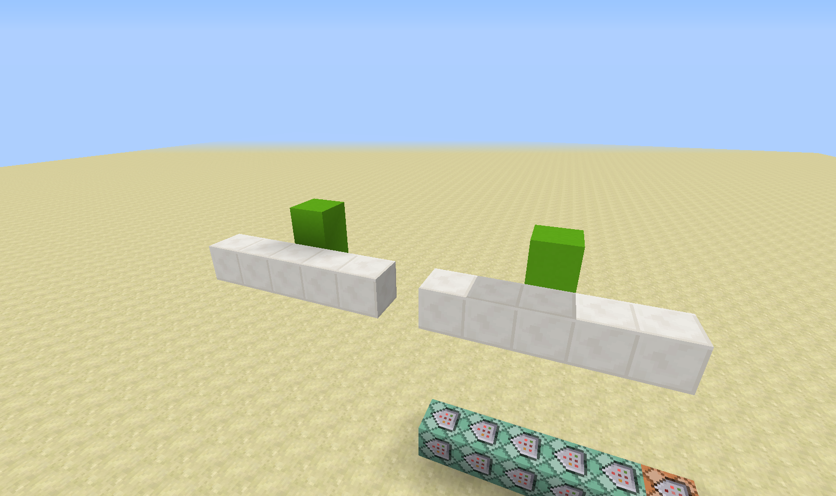 /summon falling_block ~ ~3.5 ~ {NoGravity:1b,Time:-2147483648,DropItem:0b,BlockState:{Name:"minecraft:quartz_block"}}and I also tried different directions and also tested to encase them, I don't see it occurring, but I'll keep it in my test world, in case anything would change again.
