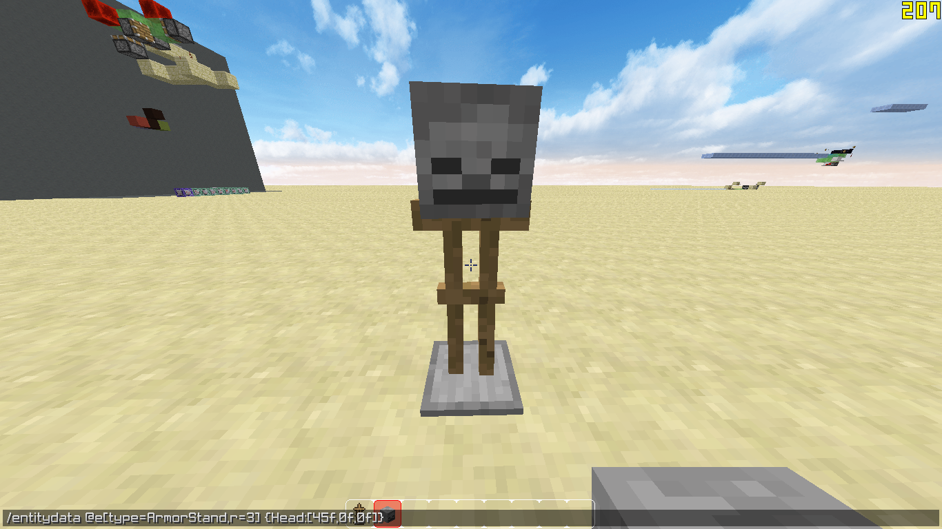 /entitydata @e[type=ArmorStand,r=3] {Pose:{Head:[45f,0f,0f]}} [WORK FINE]