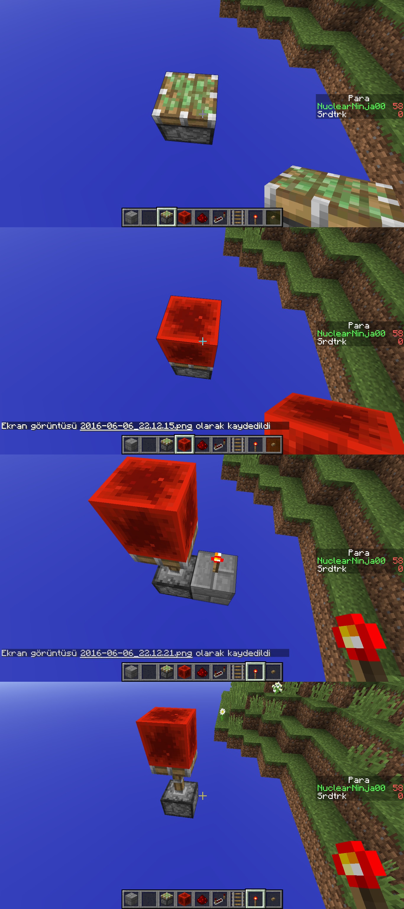 We put redstone block onto the piston.Give Power.Power off.And piston to return to the table.
