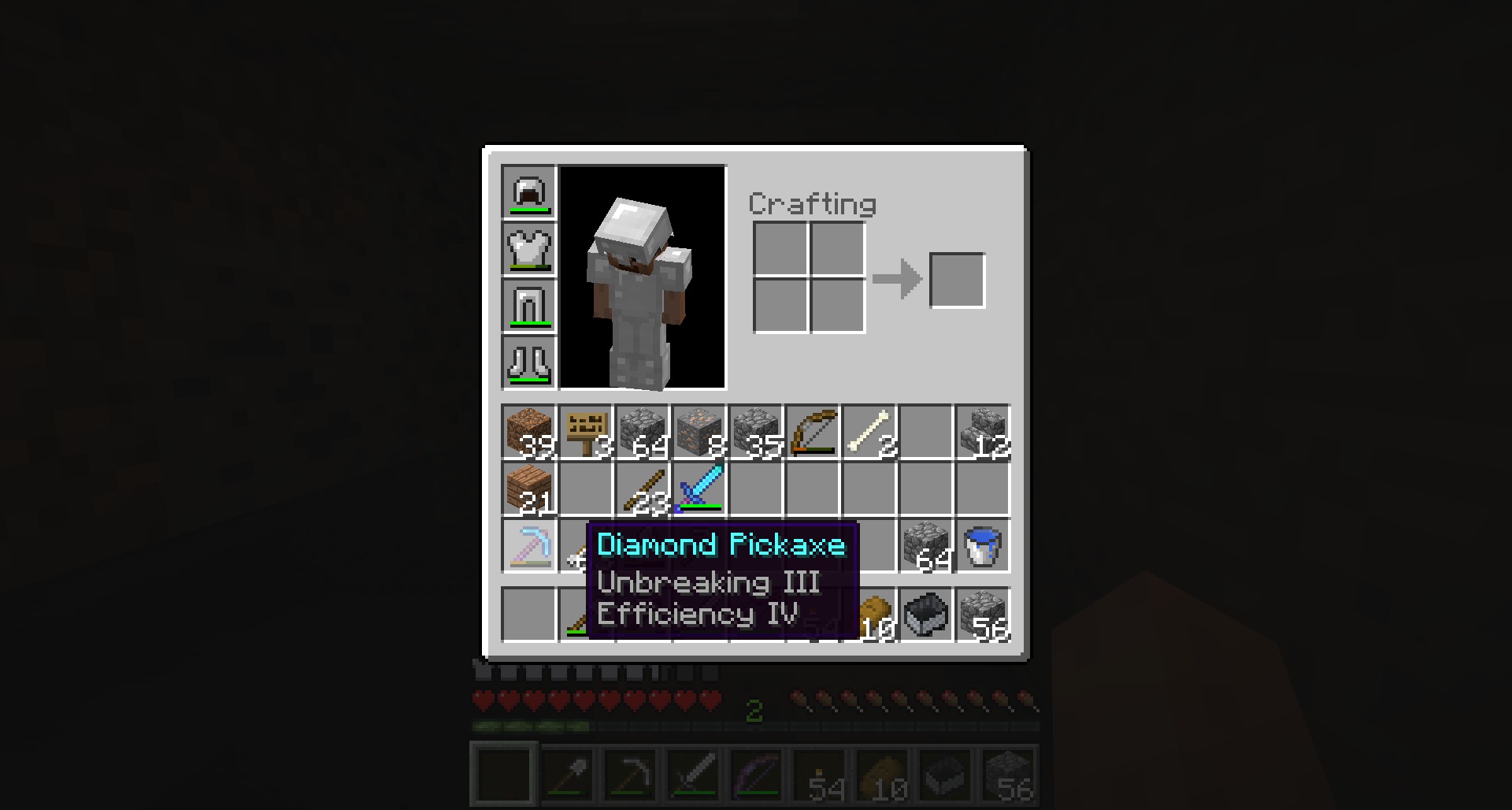 After that, I opened my inventory and dragged the Diamond Pickaxe of screenshot two in the same slot resulting in a recreation of the previously broken item attached to the mouse-pointer (I still had 3 strikes left until it broke again).