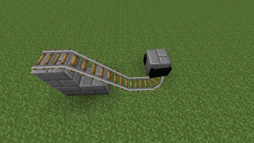 Normally a rail track terminating with a block will stop a minecart from derailing when it reaches the end, however, when the last piece is a turn or a downward slope, the minecart will turn black, pass into that block, and possibly through the block completely. Tested both directions, all orientations.