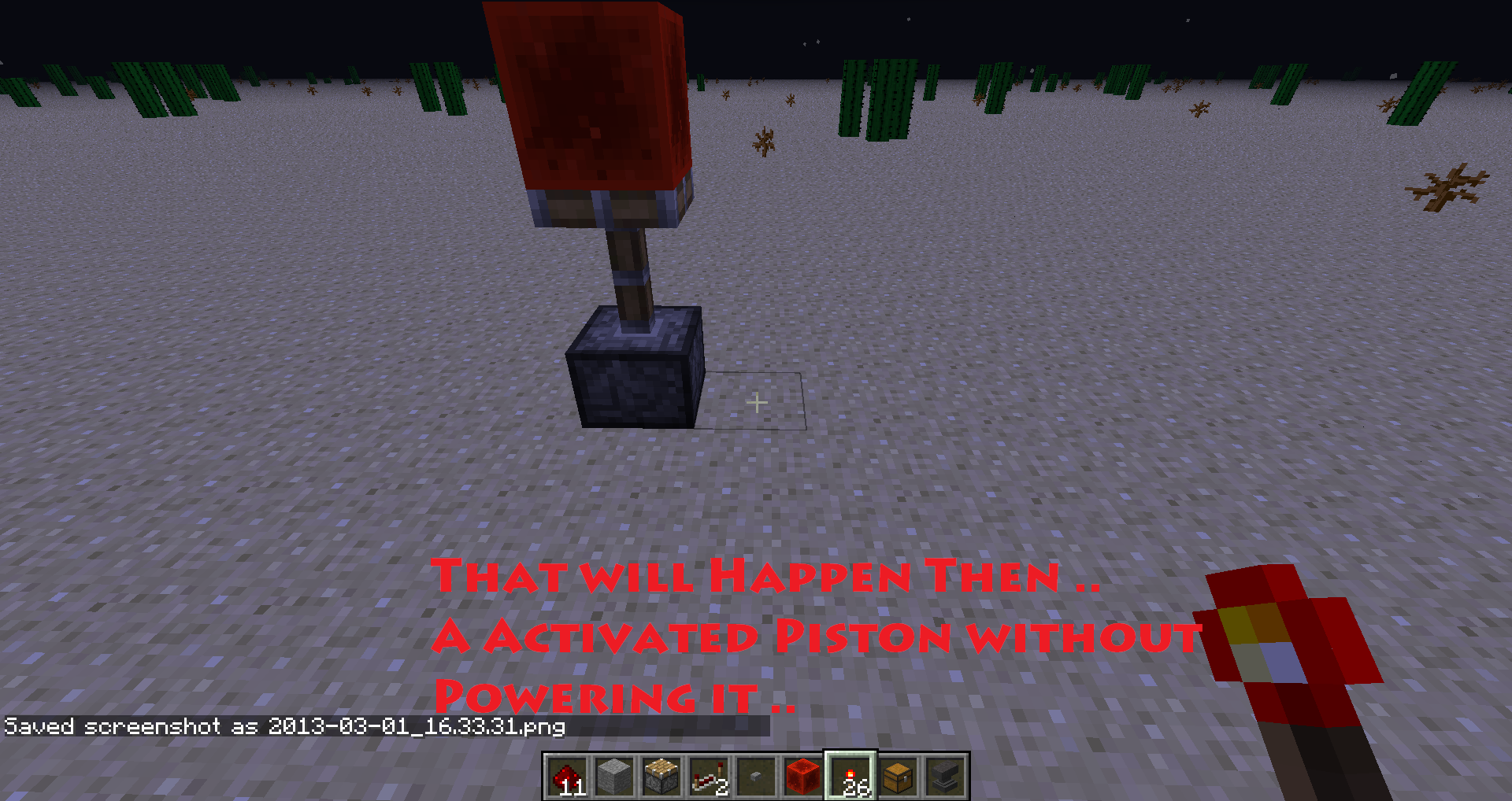If you now put a redstone lamp near by the piston to power it and remove it then the Piston will Still be Powered on !