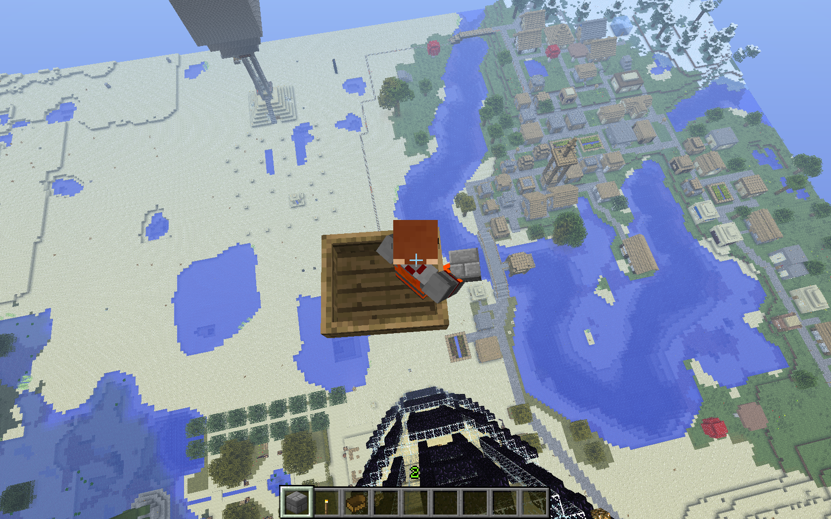 Place a boat from a high place, push it off the edge, and get in it, and after a few seconds you will see water splashes.