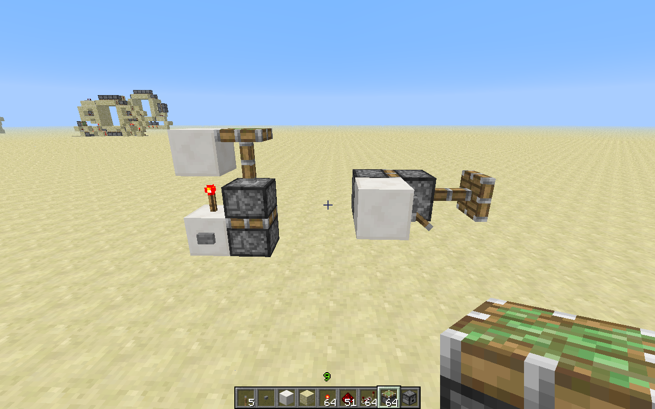 I built the two setups from the picture and I pressed the button and powered the lever. That worked fine but when I pressed the button and flipped the lever again, the second pistons disappeared.