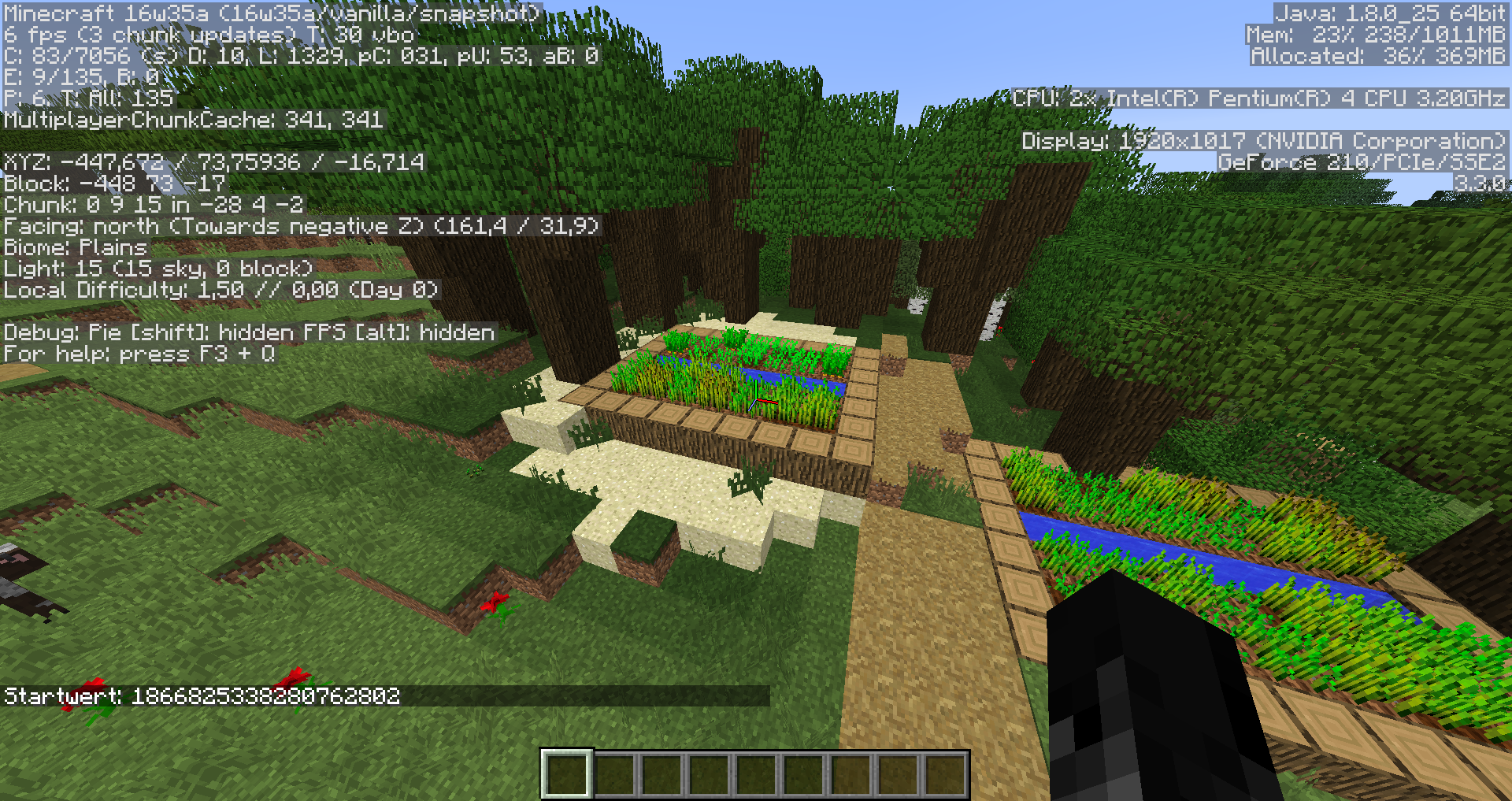 First screenshot in 1.10.2 and second in 16w35a, there is one sandspot more.