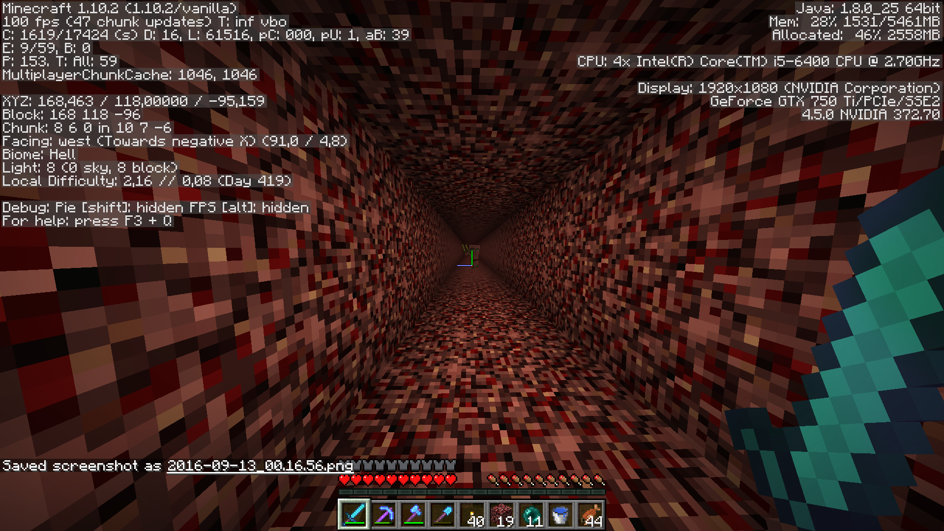 The screenshot is of the nether roads, closed and impossible for the enderpearl teleported me like 50 blocks down and 100 in the other two directions, more or less.