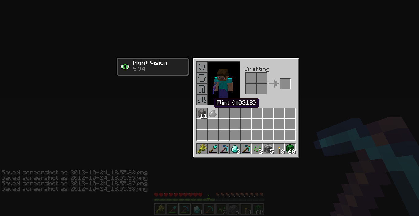 Also related: Drinking a night vision potion and a blindness potion together will cause the same effect.