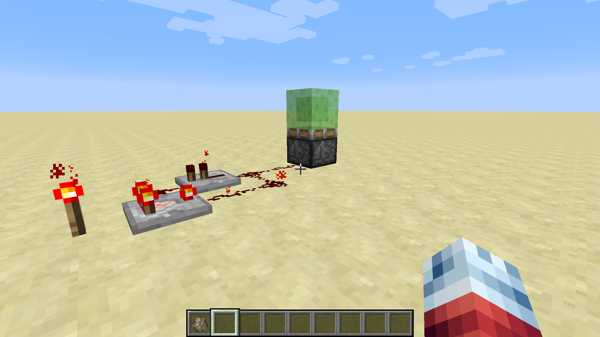 a player, or mob takes fall damage when bouncing on a slime block pushed by a piston. use the mechanism I created in the screenshots and bounce on the slime block to reproduce.