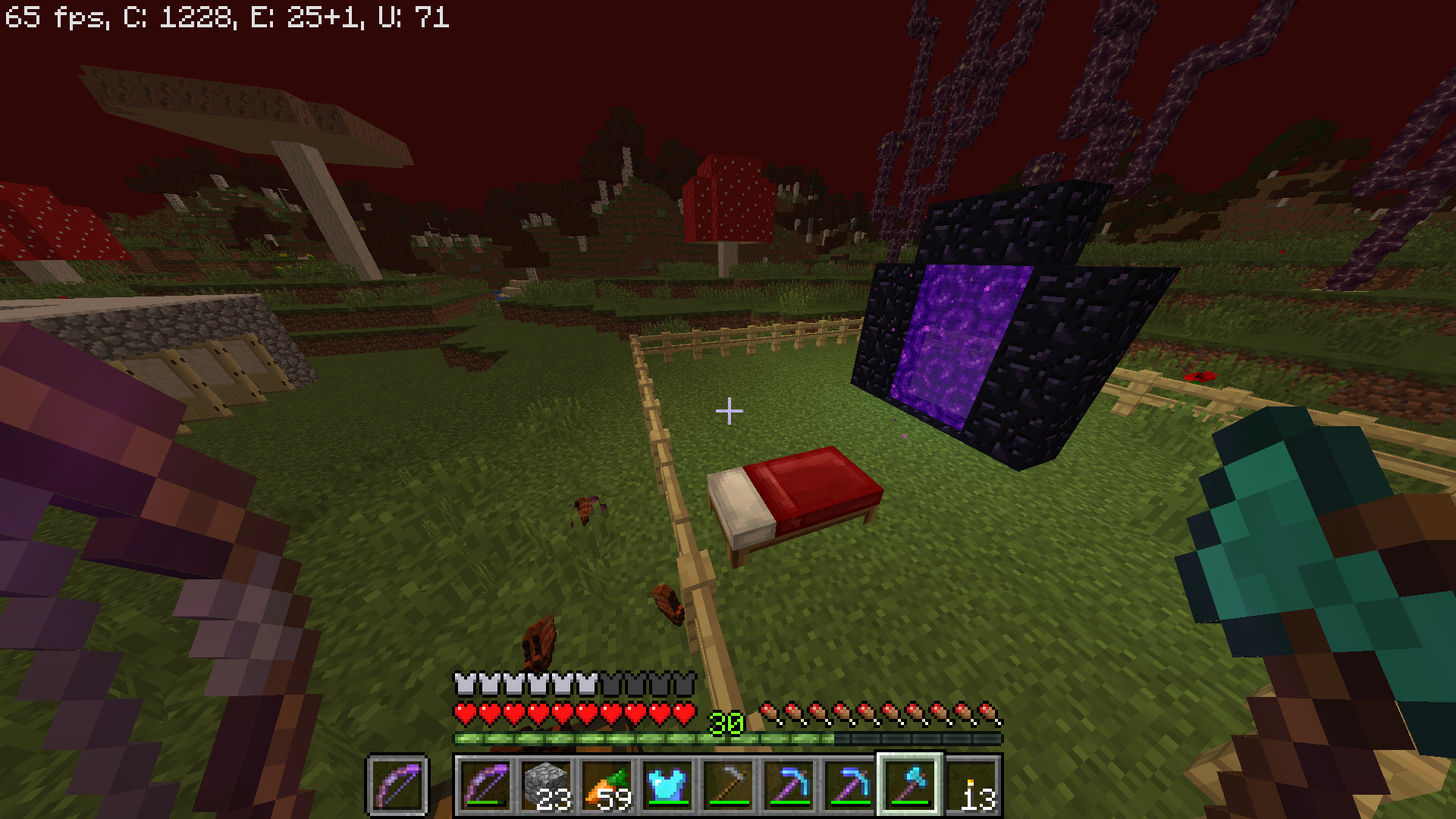 2. All i do know is that i was on hard, I was trying to kill a straggler zombie pigman that escaped the nether, but i ended up hitting him in the portal so i decided to follow. The nether didn't seem to load in properly then i herd the pigman die and found myself in this hybrid dimension.