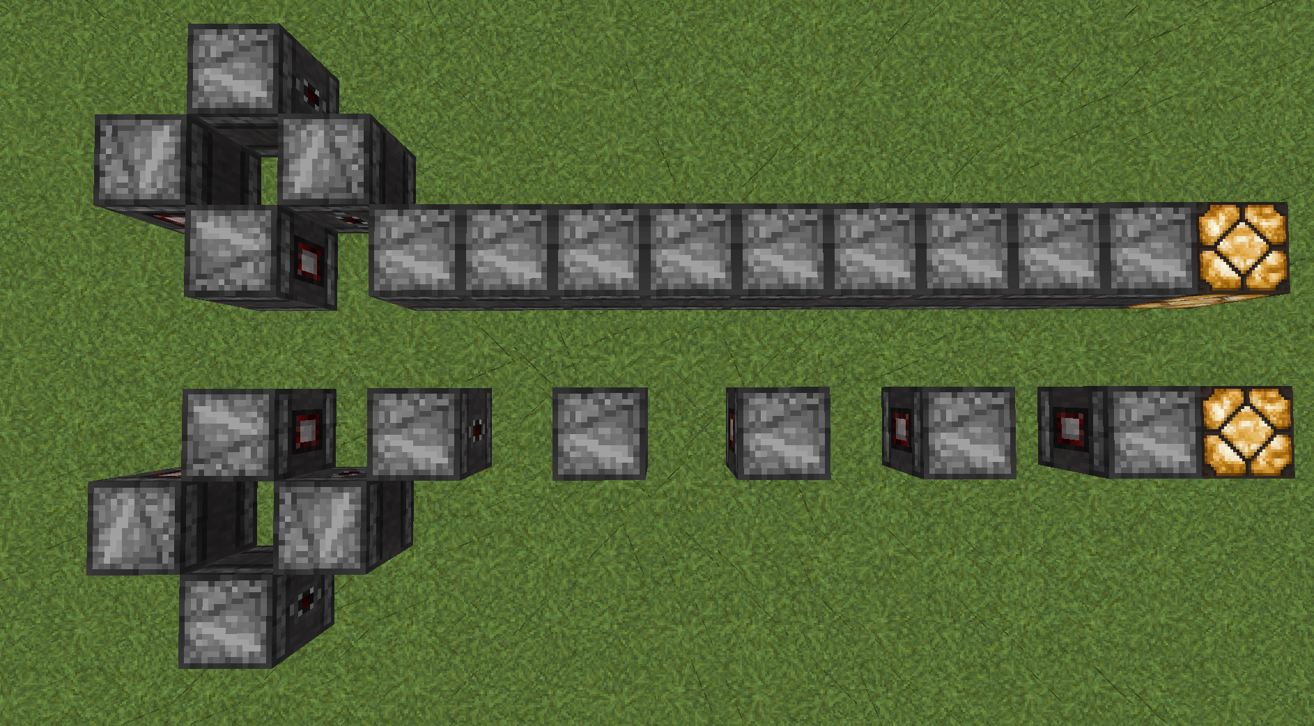 The observer blocks are meant to work as your standard block update detectors using budded pistons. The standard block update detector detects these invisible redstone updates.