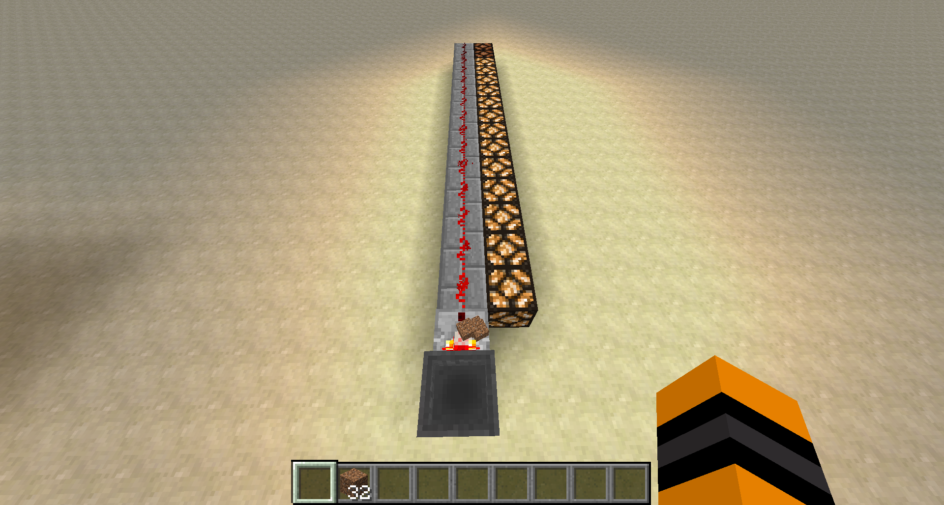 fill 4 slots of the hopper inventory with full stacks of dirt