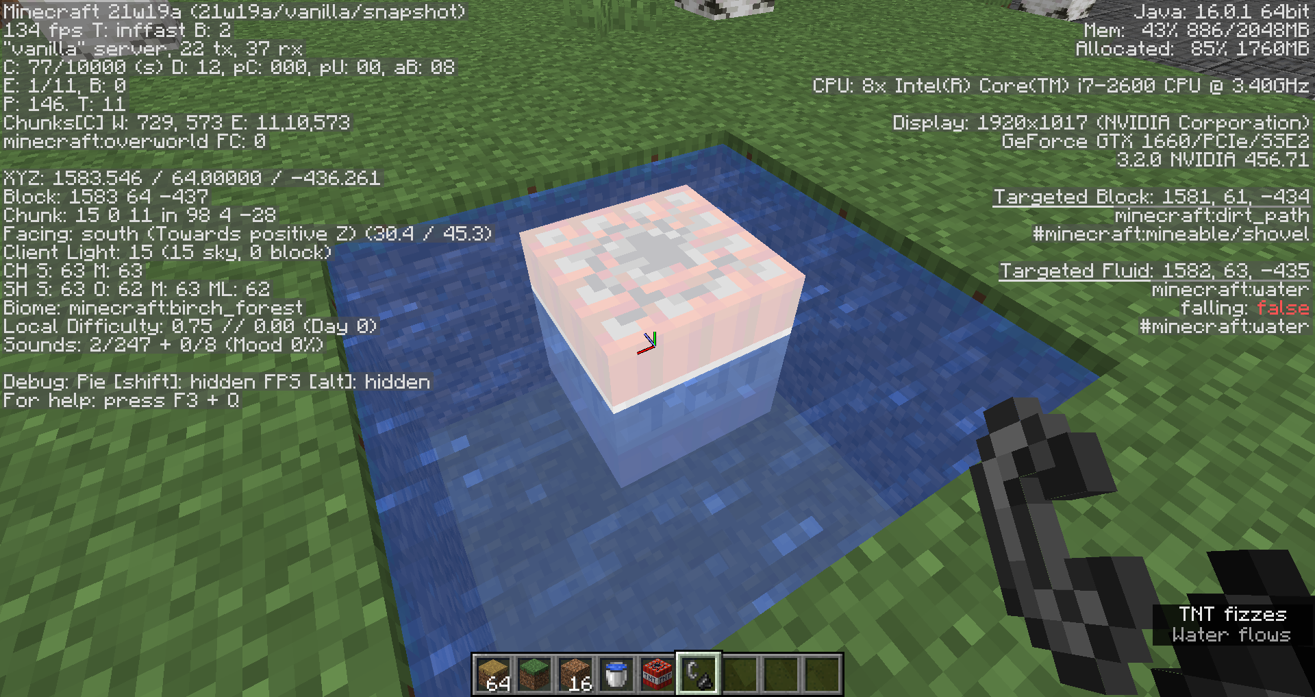 Possible cause: In the TNT entity's explode() function, the Y-coordinate of the explosion is calculated as 0.0625 x the entity's height. Since the TNT entity is 0.98 blocks tall, this puts the Y-coordinate at 0.06125, inside the gap in these blocks and outside of the water. I assume that the slightly smaller hitbox was done to allow TNT to fit down 1 block wide dropshafts easily.