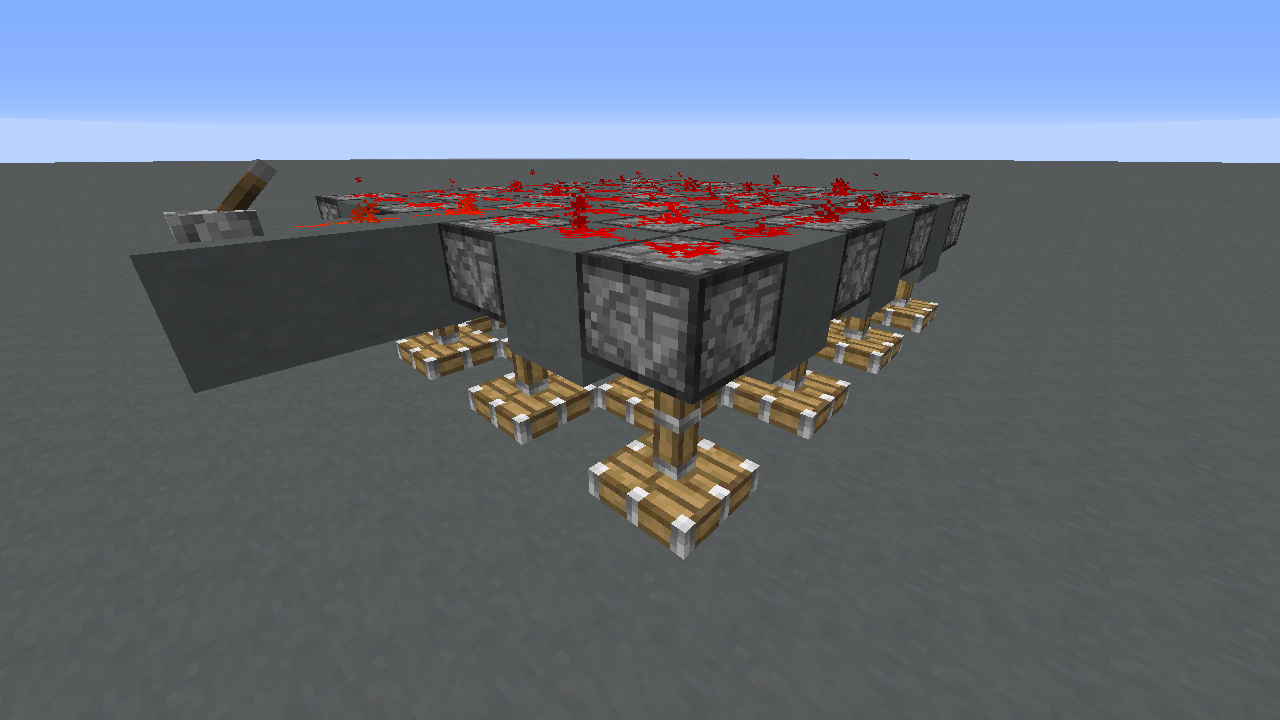 7x7 Grid of pistons facing down, blocks and redstone on top of it causes the game to crash when activated 2nd time.First time redstone on top of pistons pops when activated and after replacing the redstone and activating it again game crashes. (When pistons retract)