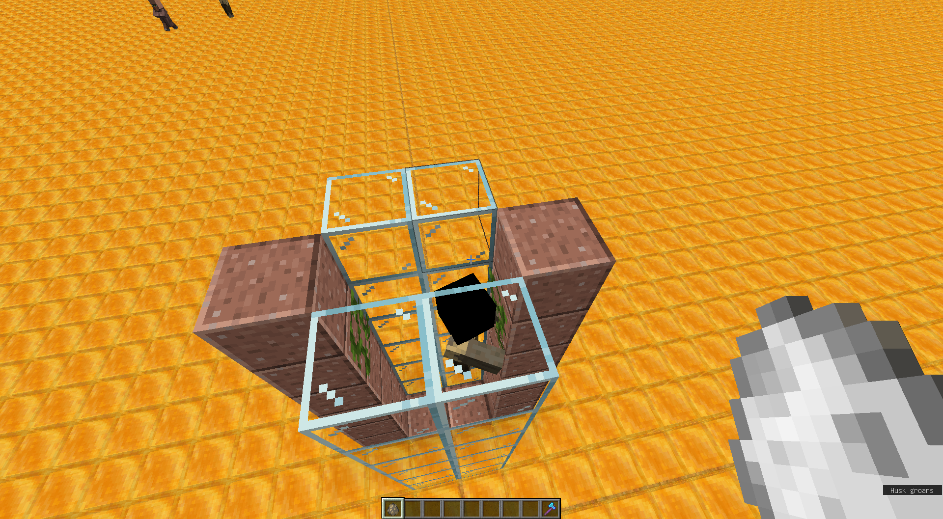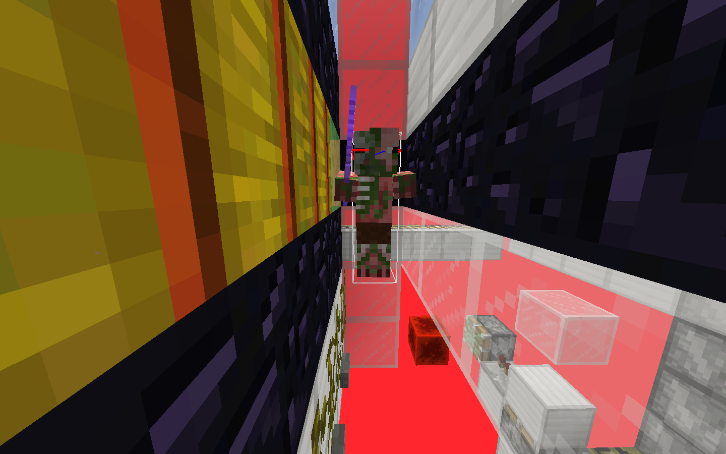 Trying to stop fall damage from mobs in a "standard" setup using vines will get the mobs stuck on top of the vine as shown in the picture. The new hitbox behaviour makes it so the mobs push each other infinitely on top of the vine again, making vines in any farm basically useless.