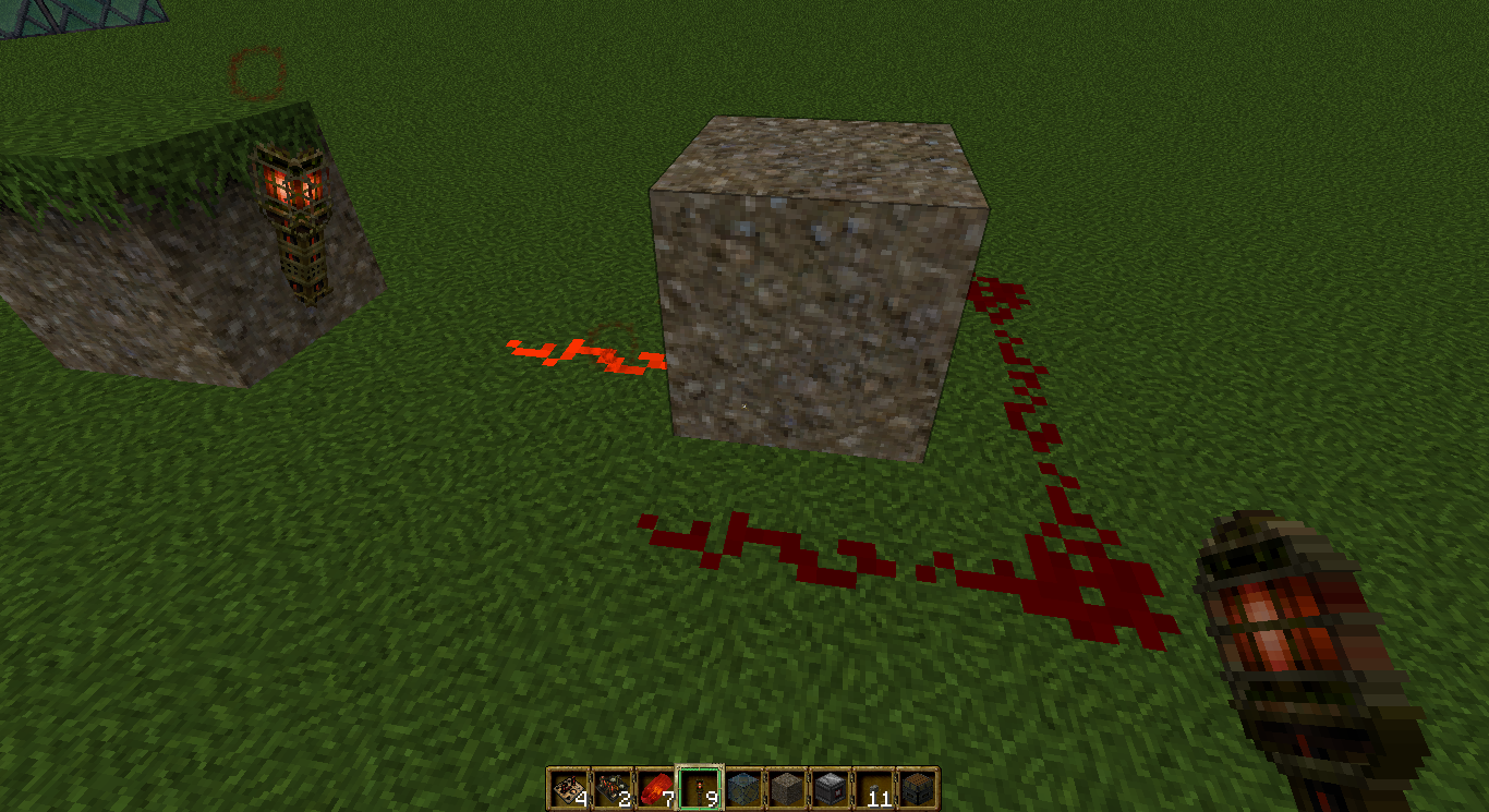 Redstone wire will not conect to blocks that are on their sides only stright on. The two pictures show a piston that is not being powered and the second is showing a block being surounded by wire and not conected.