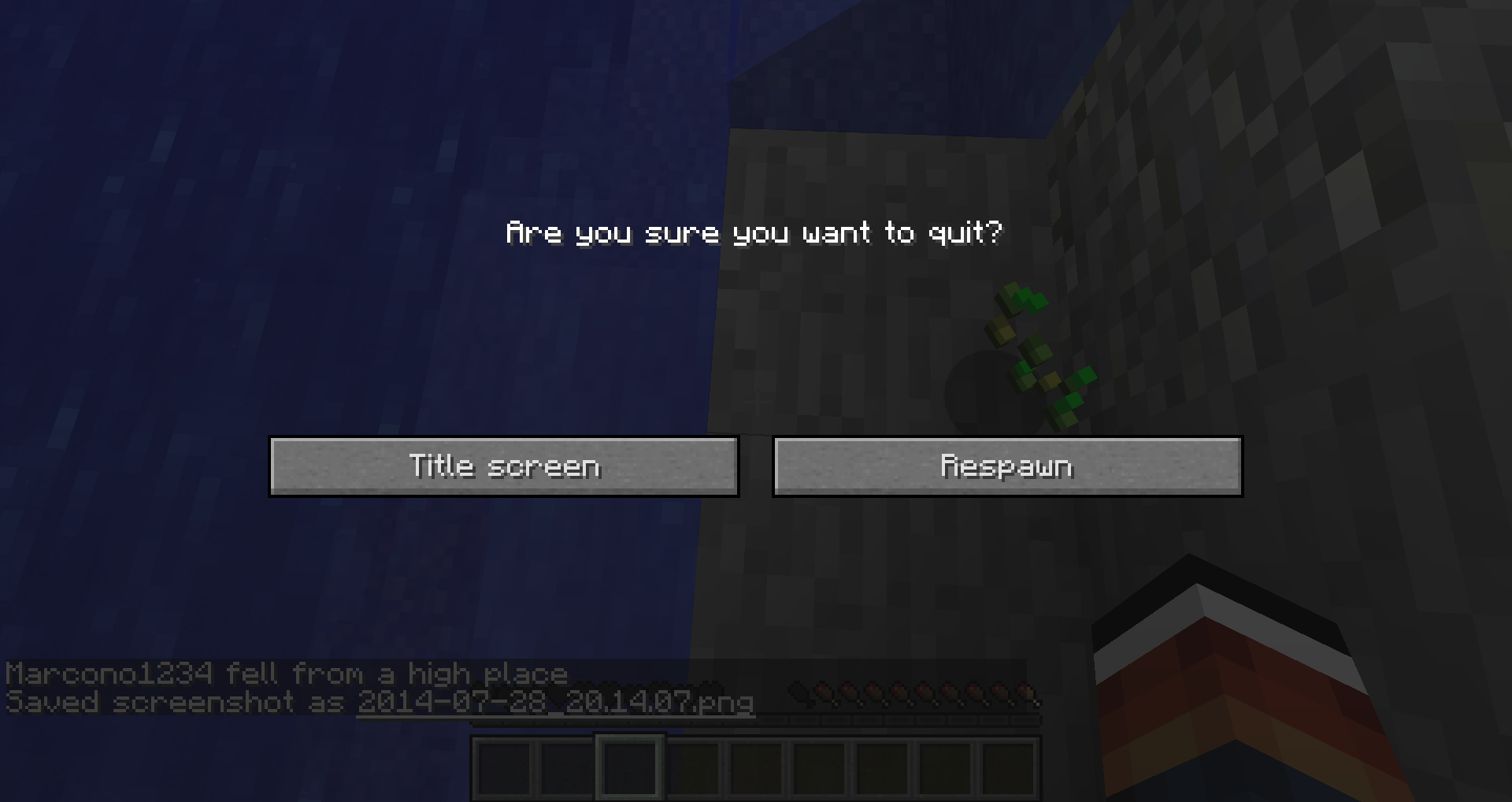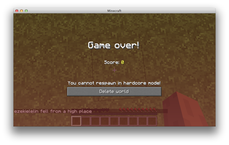 (Respawn deletes the world,title screen however does not delete the world and cause you to get to the "Delete world" window when trying to reopen)