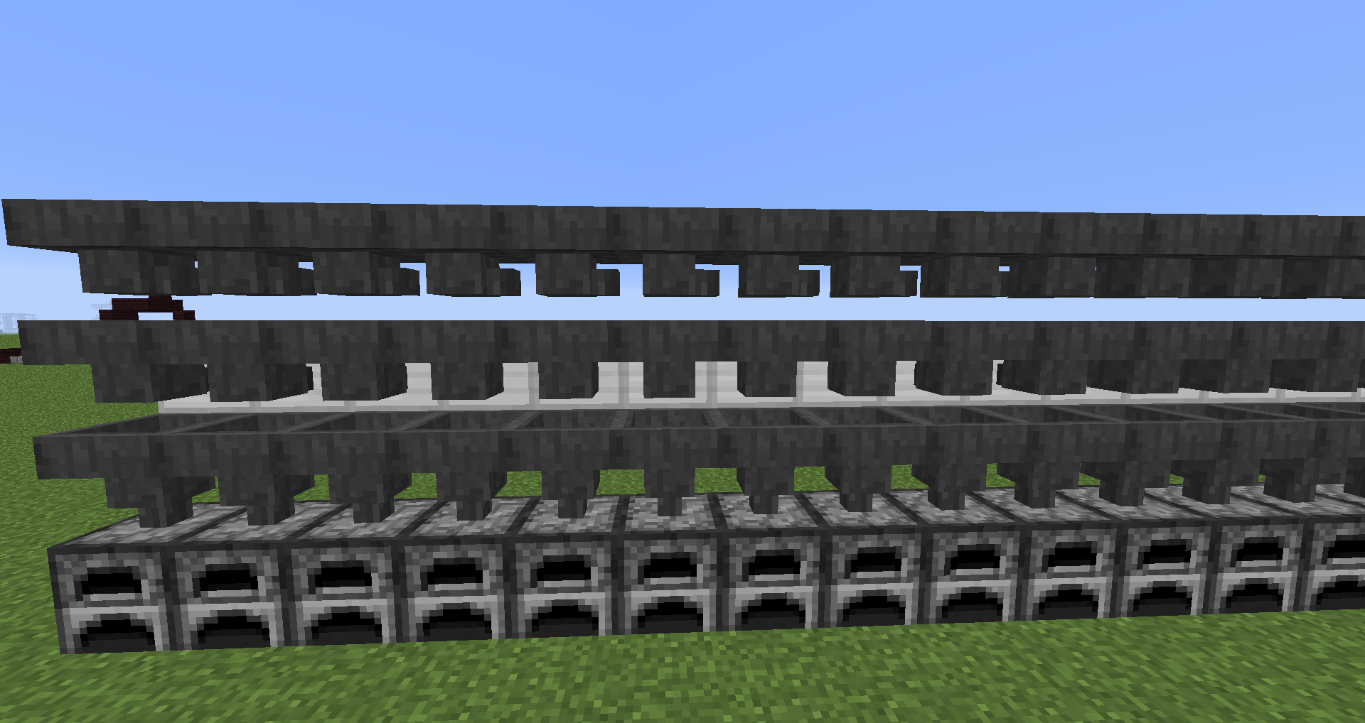 [media]Place a line of solid blocks one block behind and one block above these hoppers.
