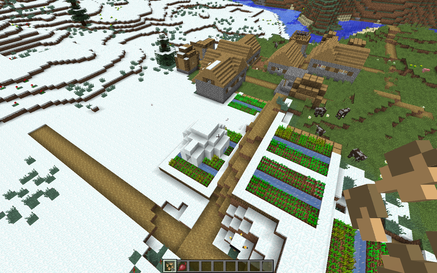 Igloo spawned on top of farmland in villages and covered it.
