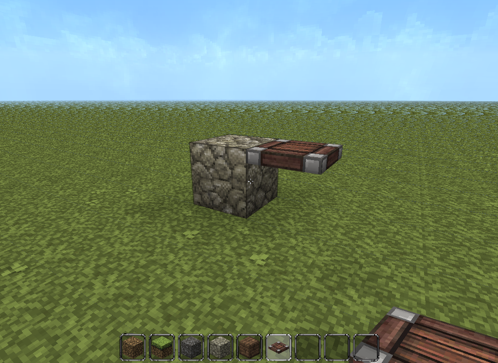 I have searched for this and doesn't seem to be listed. Place a Trapdoor at the of a block which is one high above the ground, now right-click on it till it's in its down position, go into the 'trapdoor block area' and right click on the trapdoor again to bring it back up. You are still within the block area while the Trapdoor has collided with yourself, you can step out of the Trapdoor area but you can't then re-enter it. You can also jump up 'through' the trapdoor but land on the top. Images are below.