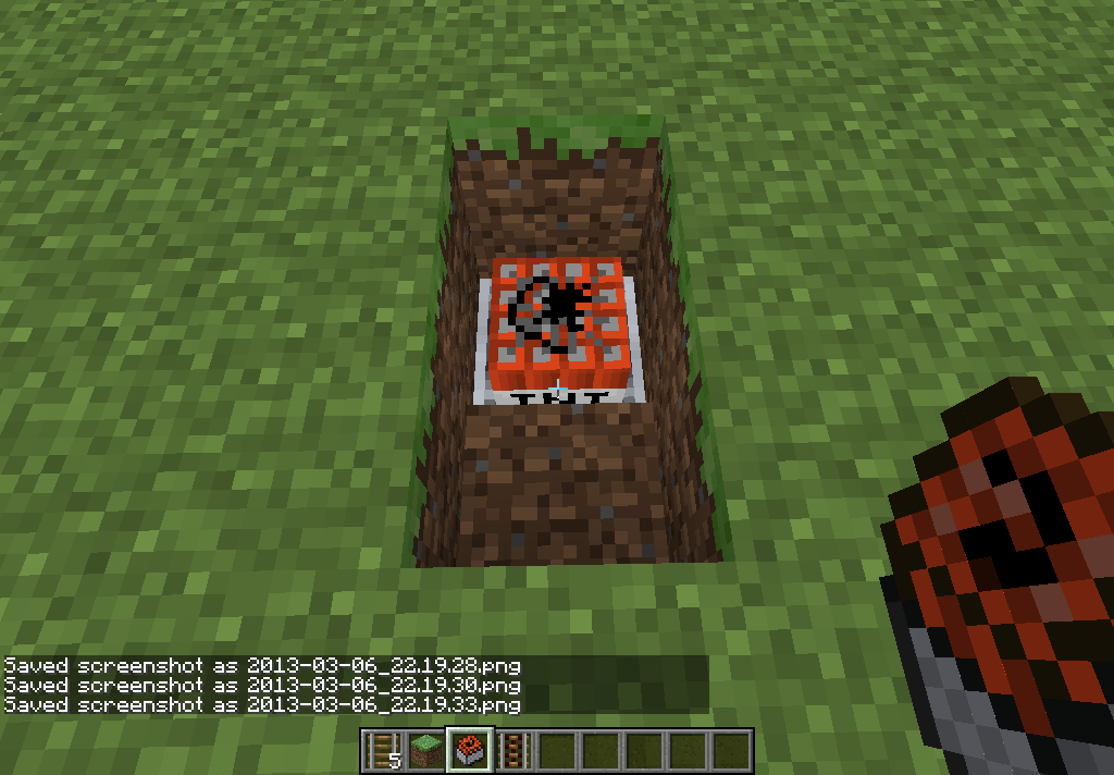 2. Place a block over the hole and place a rail and a TNT minecart on it.