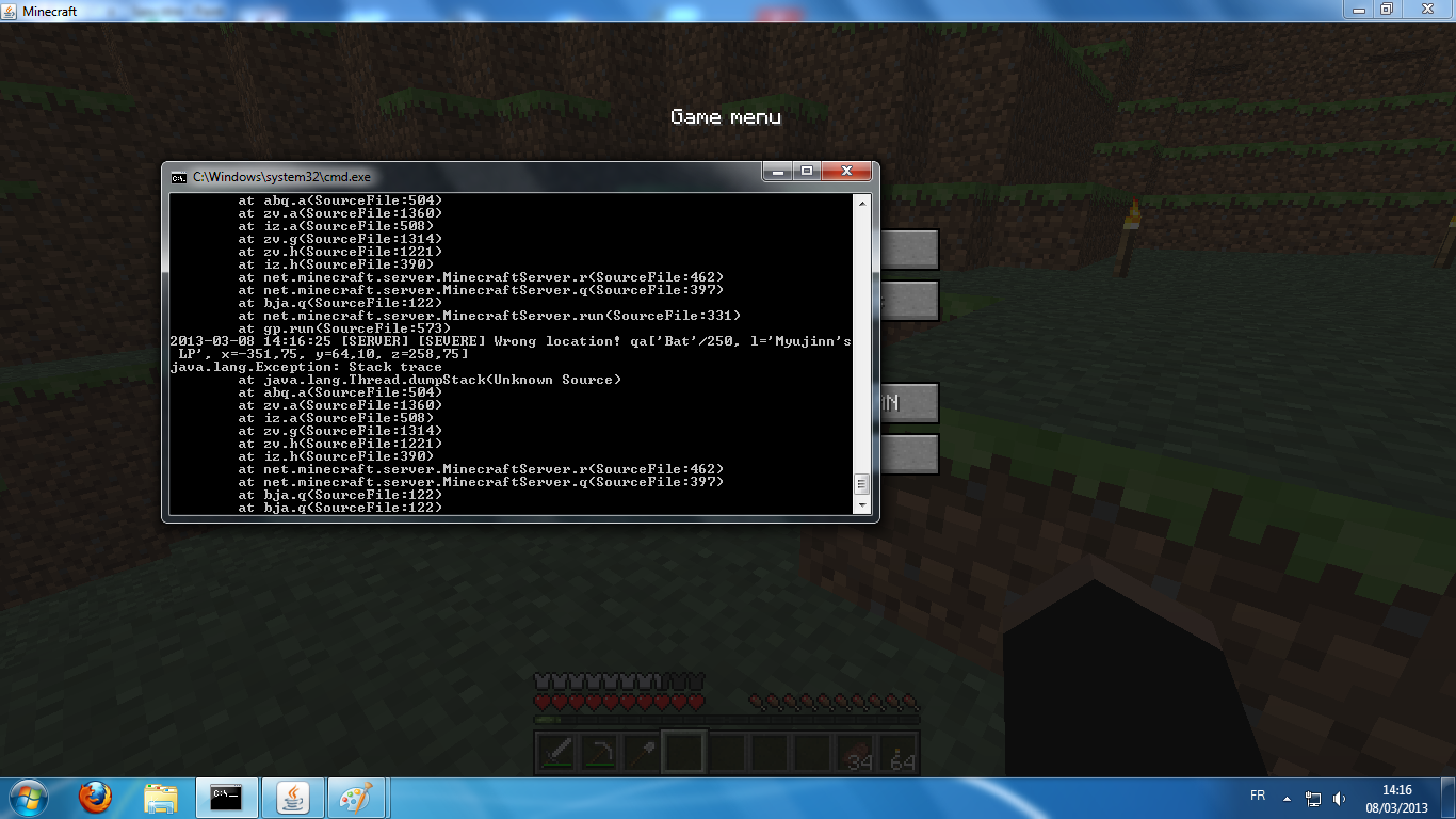I observed this bug in the console , it says : Wrong Location! qa['Bat'/1004, l=Myujinn's LP' , x=351,75, y=64,10, z=258,75]