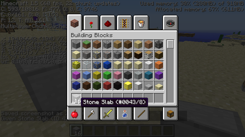 Mr. Admin, you should take a closer look. See that screenshot just taken from a multiplayer game running on server 1.6.2 . Smoth stone slab 43:8 on the left, regular slab 41:0 on the right.