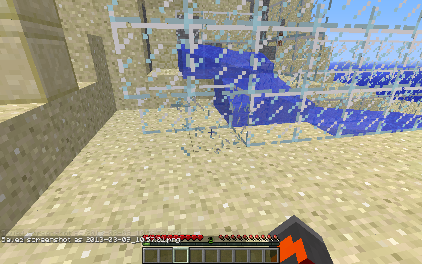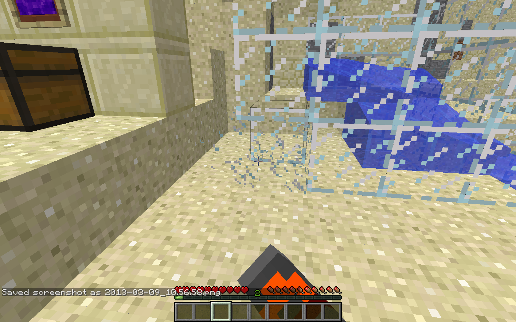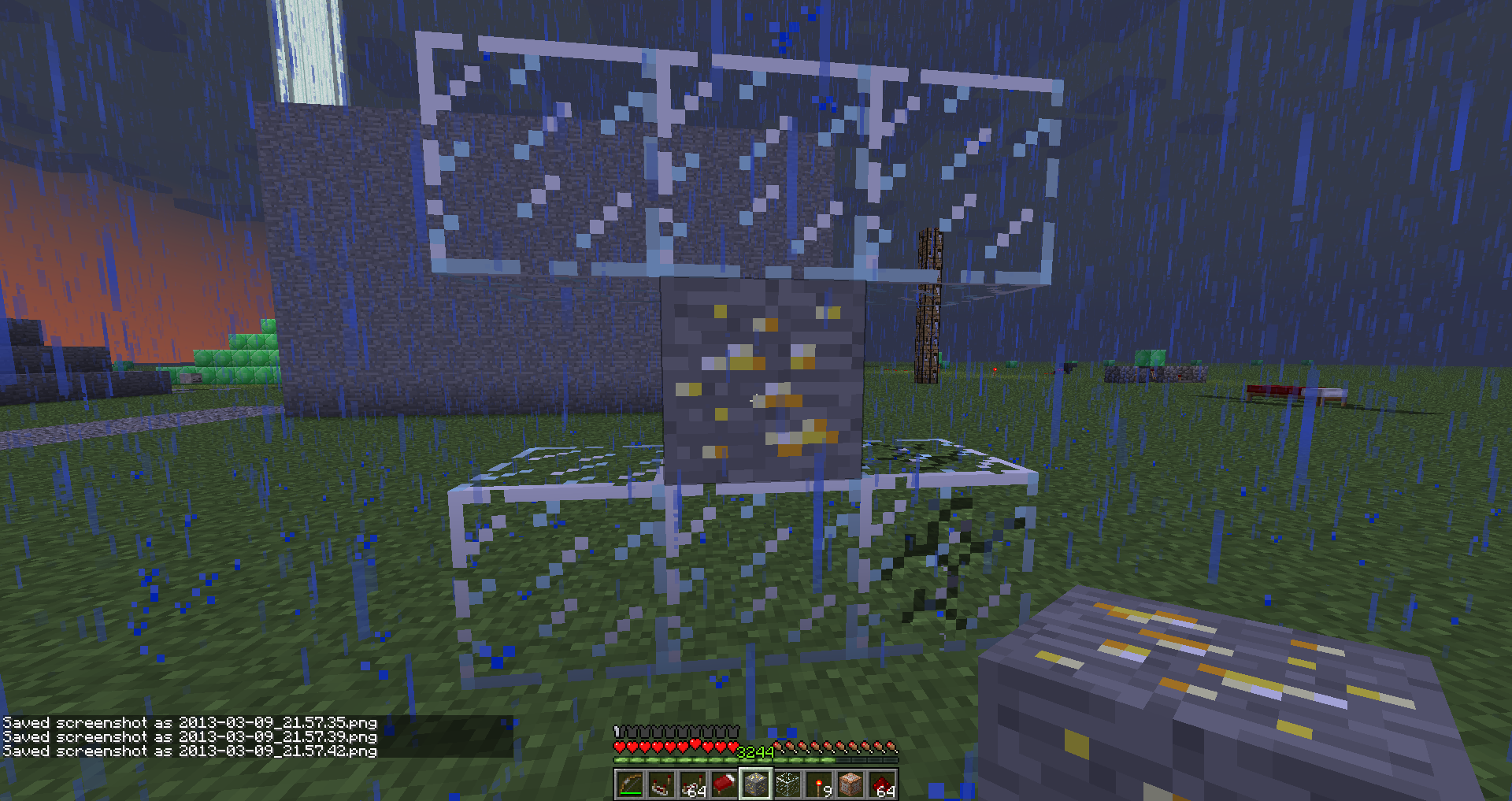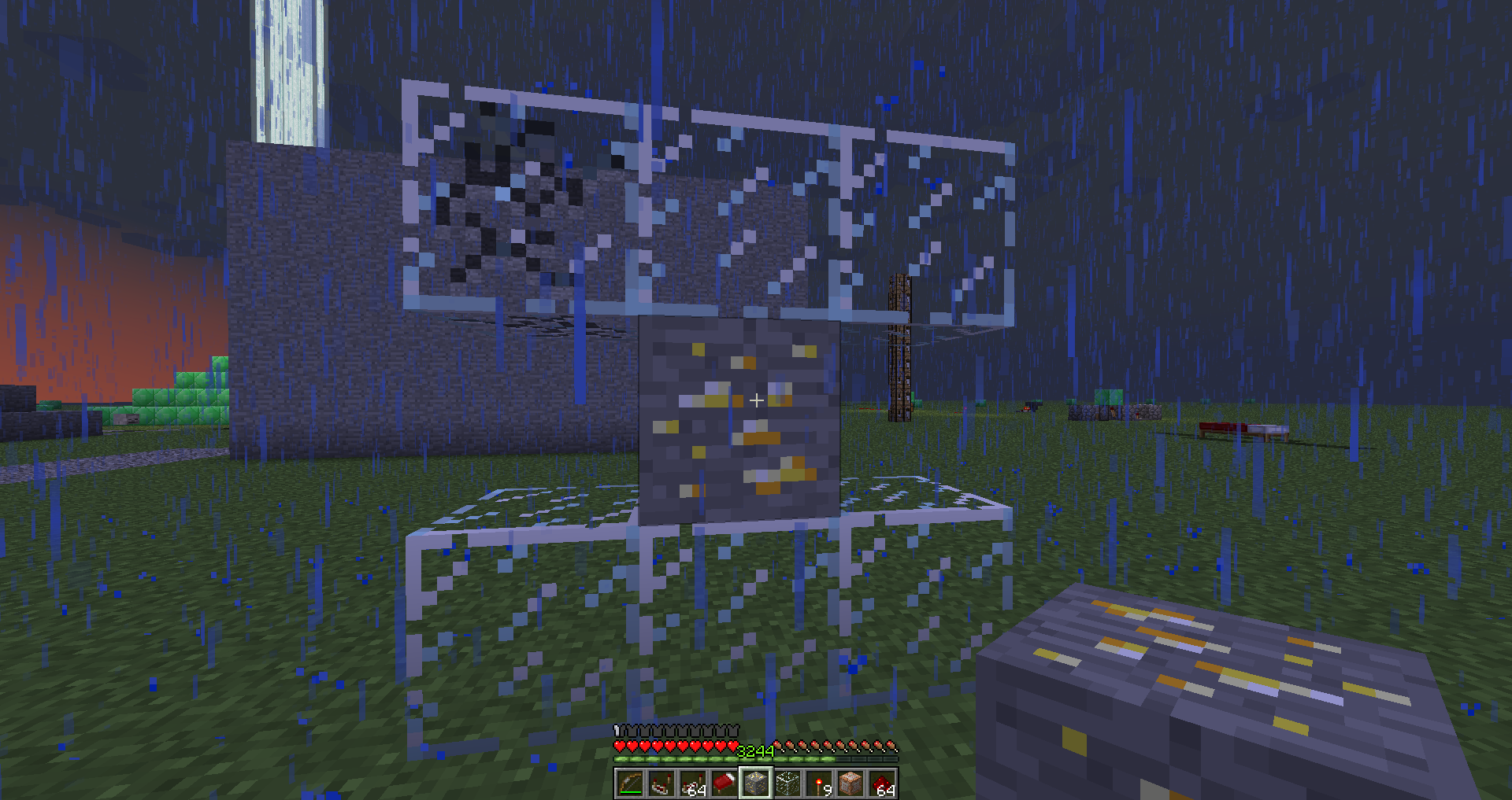 Note: In the screenshots the mouse was moved to the Gold Ore in progress of breaking the glass block.