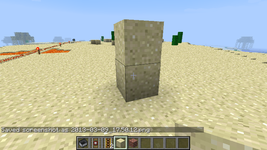 When two sand blocks are piled, and you remove the one underneath, the other block flashes and 'jumps' one block above before falling.