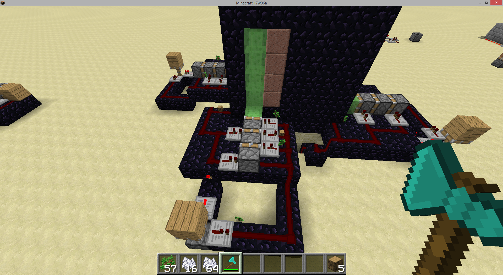 When using pistons to crush leafs (using sticking pistons with logs, fence gates, slime blocks, double/triple piston extenders, etc) the saplings are pulled through the pistons and into the world. This causes tree farms to be inefficient and causes a loss of saplings resulting in the farm not being self sustaining due to the loss of saplings. The saplings should be falling to the ground (and into the hoppers) when being crushed/pushed by the pistons and not being pulled through them outside of the farm.