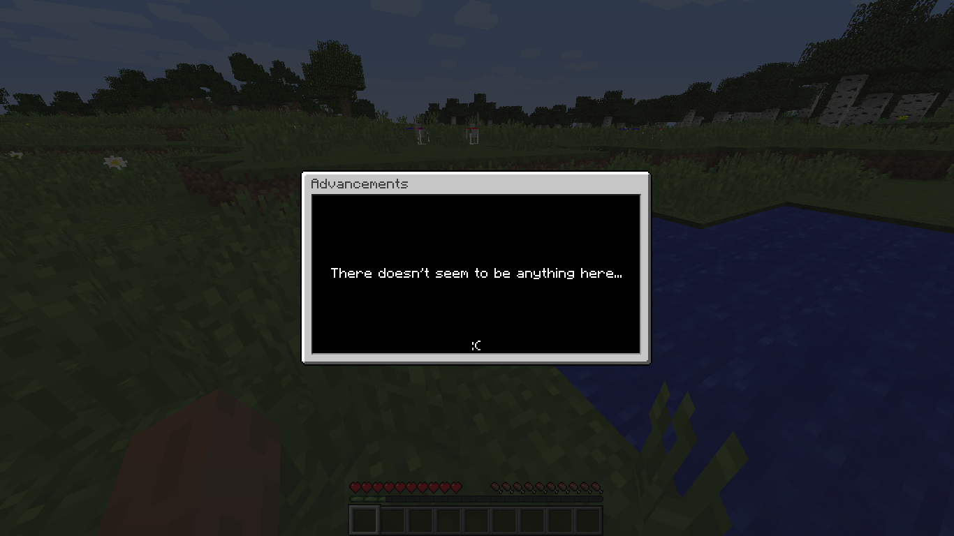 Opening the new Advancements shows an message: "There doesn't seem to be anything here... 😞". I think that this an error, but i don't know what is your opinion.