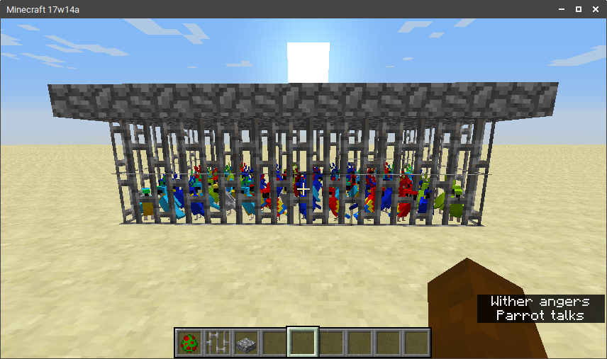 If this works as intended, then having the subtitles on gives a significant advantage to hearing players over deaf players as we can tell when a parrot is imitating a hostile mob, but a deaf player cannot.