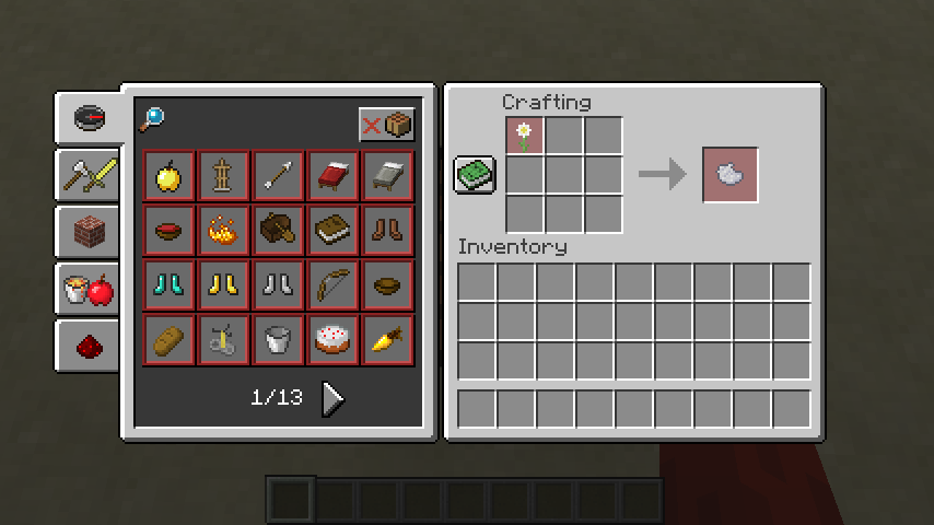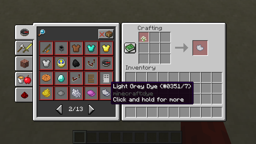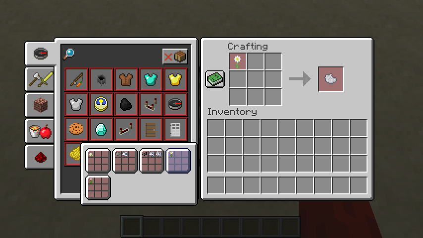 Note that these images were taken after using /recipe give @p * to obtain all recipes.