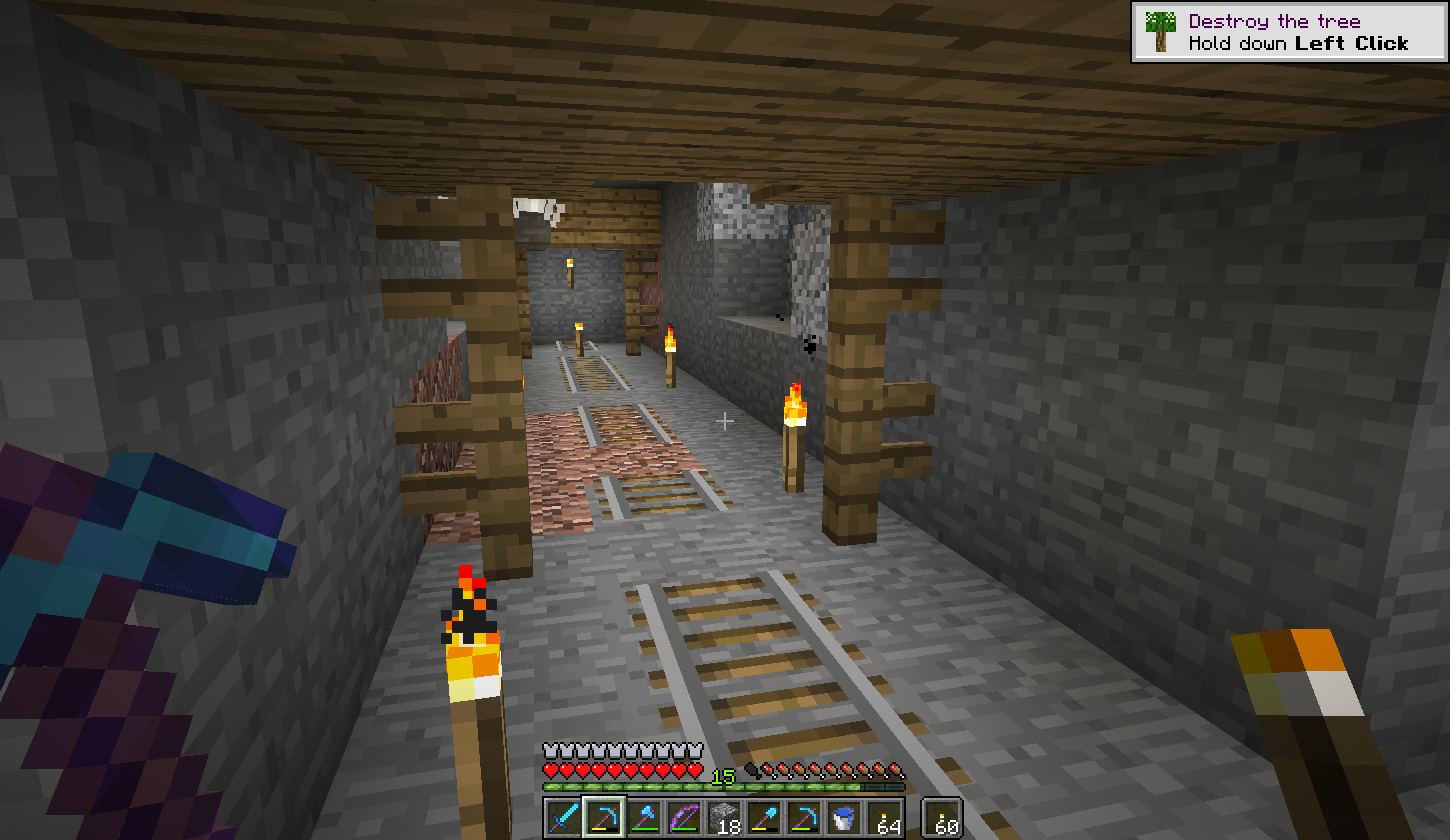 The "Destroy the tree" tutorial hint stays on-screen, even after both punching wood and using an axe. Quitting and restarting the game doesn't clear the message.