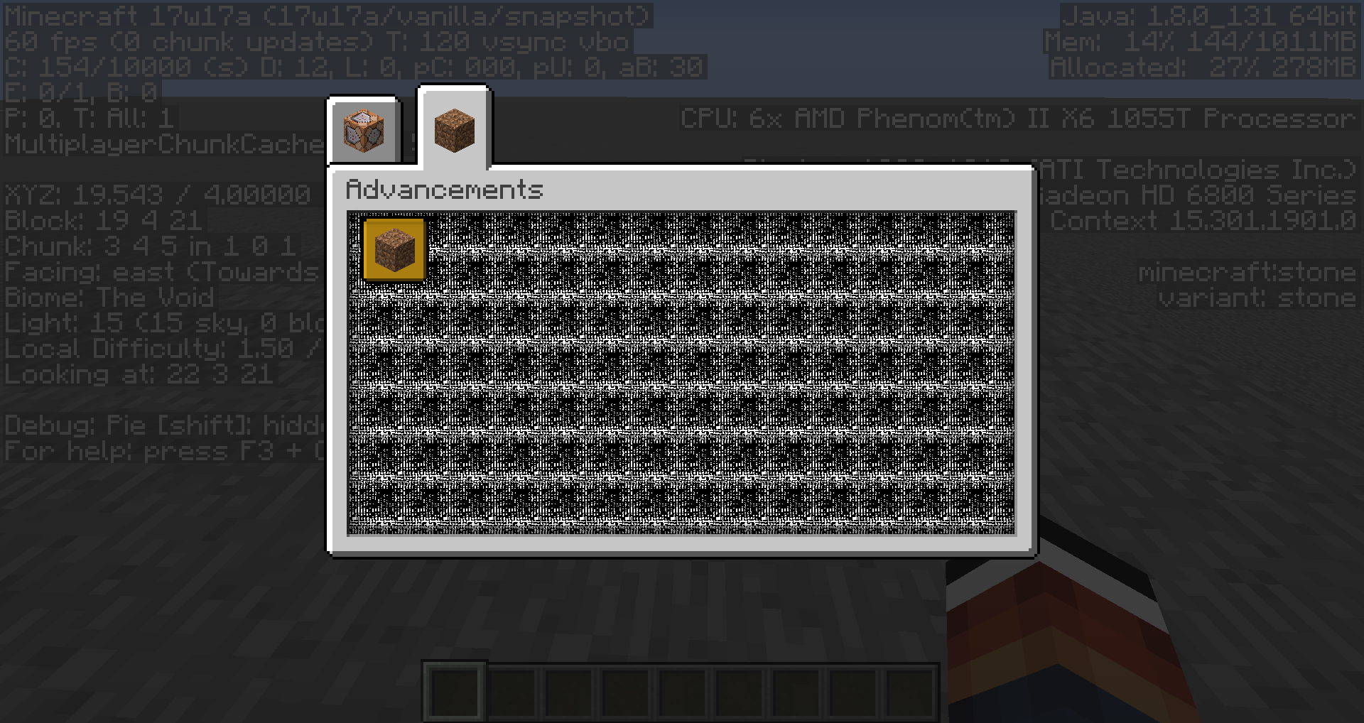 data\advancements\customOpen the world and move around or place an item in your inventory