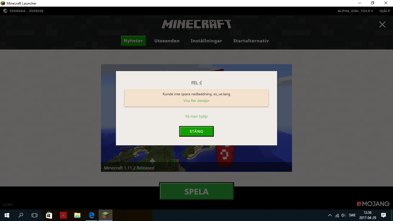 It says "ERROR 😞 Some game files are missing, and can't be downloaded while the launcher is in offline mode. Please connect to the internet and try again."