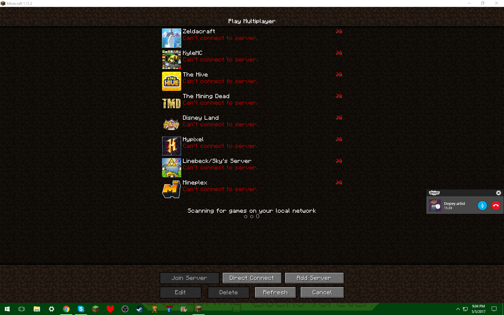 Refreshing the server list.