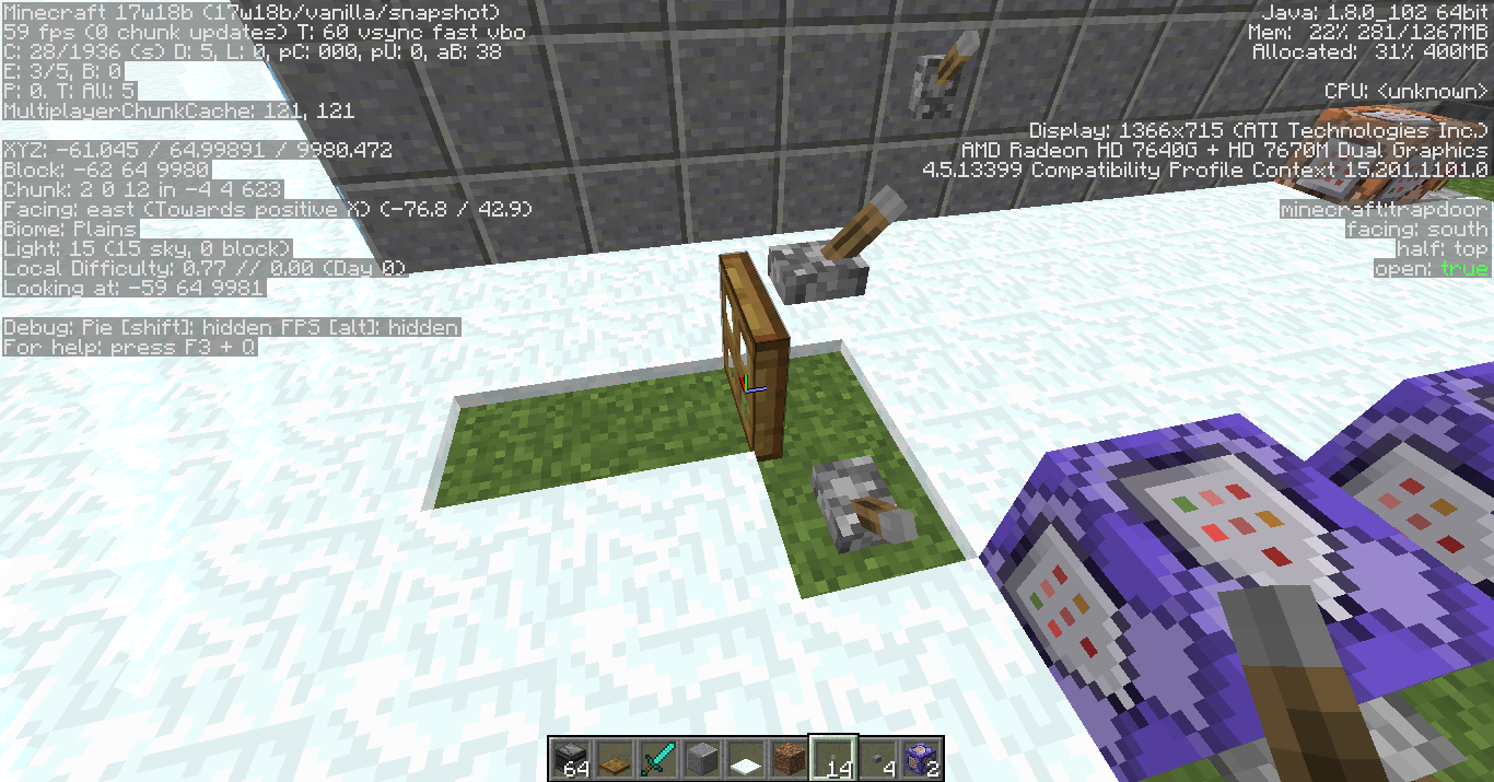 Open this trapdoor. (It does not matter how, by a redstone or a hand)